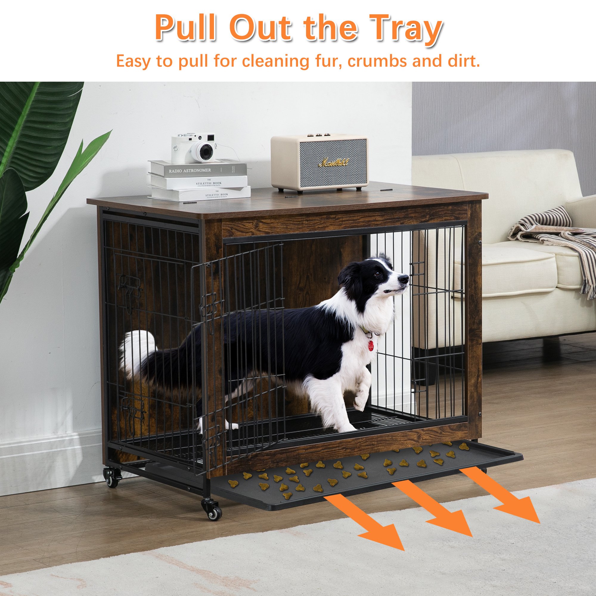 5.[Multi-Functional] This pet furniture can be used as pet crate, side table, end table or night stand. The wide top provides enough place to put some decorations such as small/medium plant, magazines, family picture frames and night lamps and so on.