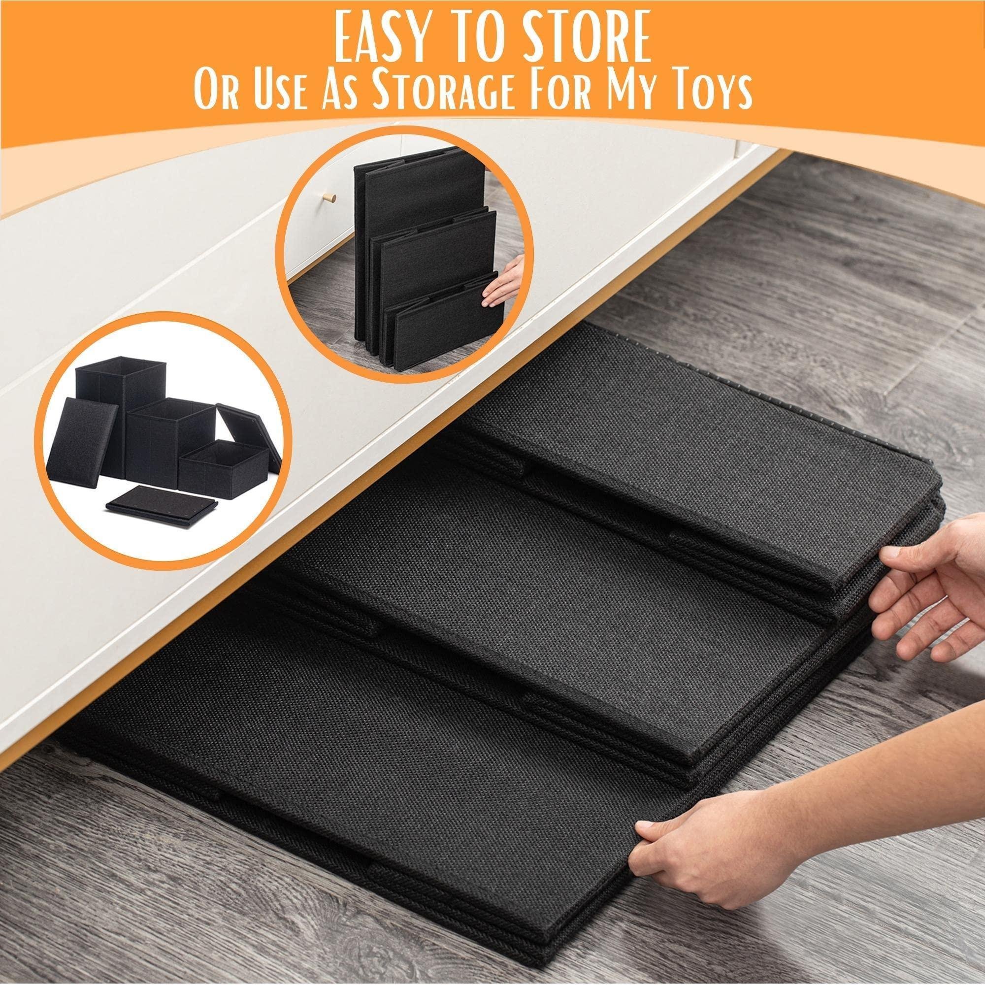 3.foldable design for easy storage and transport- easily slide under the bed, couch or keep in the car and assemble in seconds.
