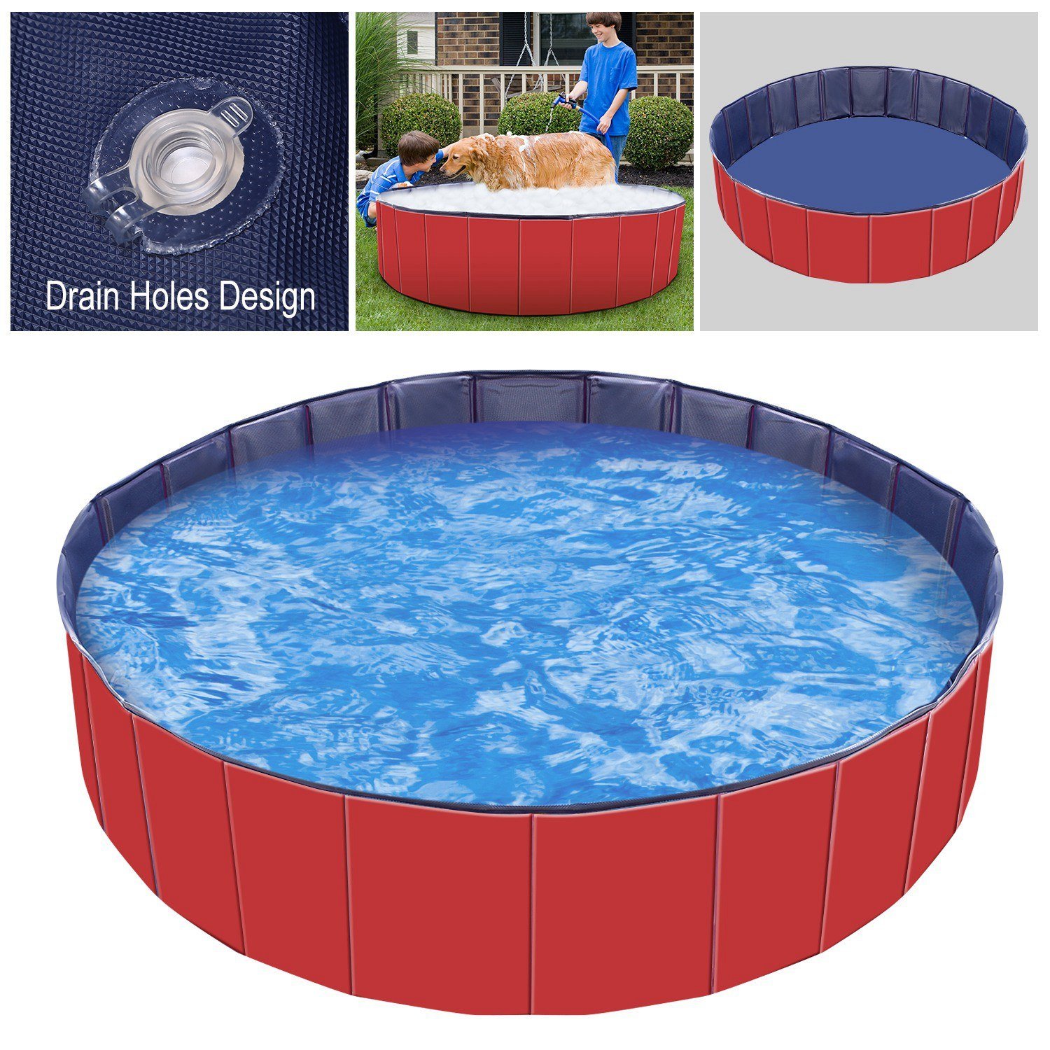 *Multipurpose*:This foldable swimming pool has many uses including a cat or dog pool,dog bathing tub,toddler swimming pool,sandbox,outdoor water pond,fish pond,baby bathtub or ball pit. A great ideal for your pet or kids to enjoy those beautiful summer days!