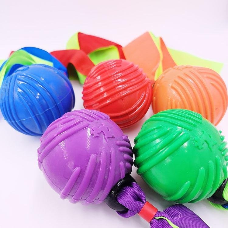 Funny Pets Dog Puppy Cat Ball Teeth Toy Chew Dog Molar Pet Sound Ball Ribbon Throwing Interactive Super Bite-resistant