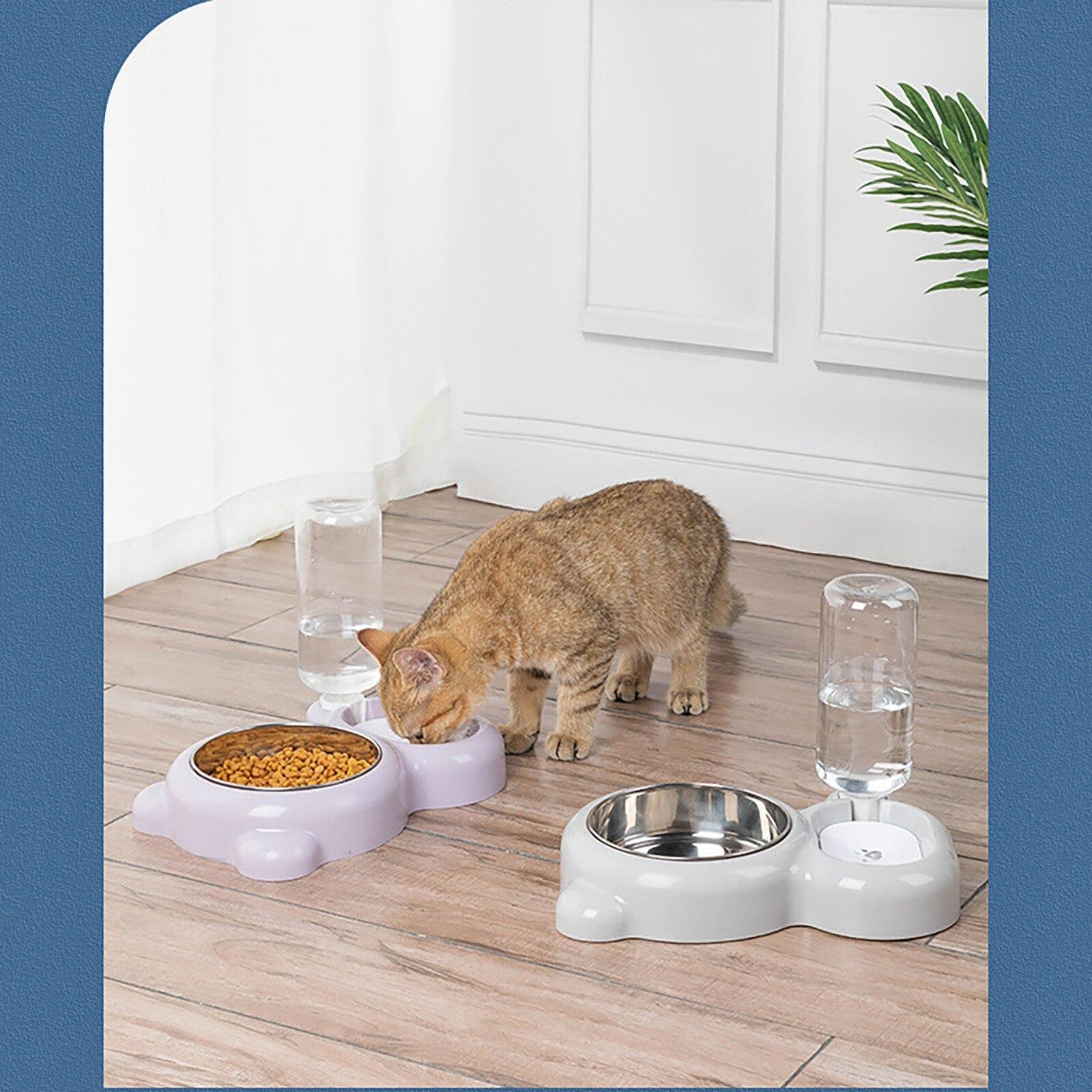 Pet Cat Bowl Stainless Steel Multifunctional Dog Cat Bowl With Water Bottle Drinking Water Feeding Bear Bowl gatos