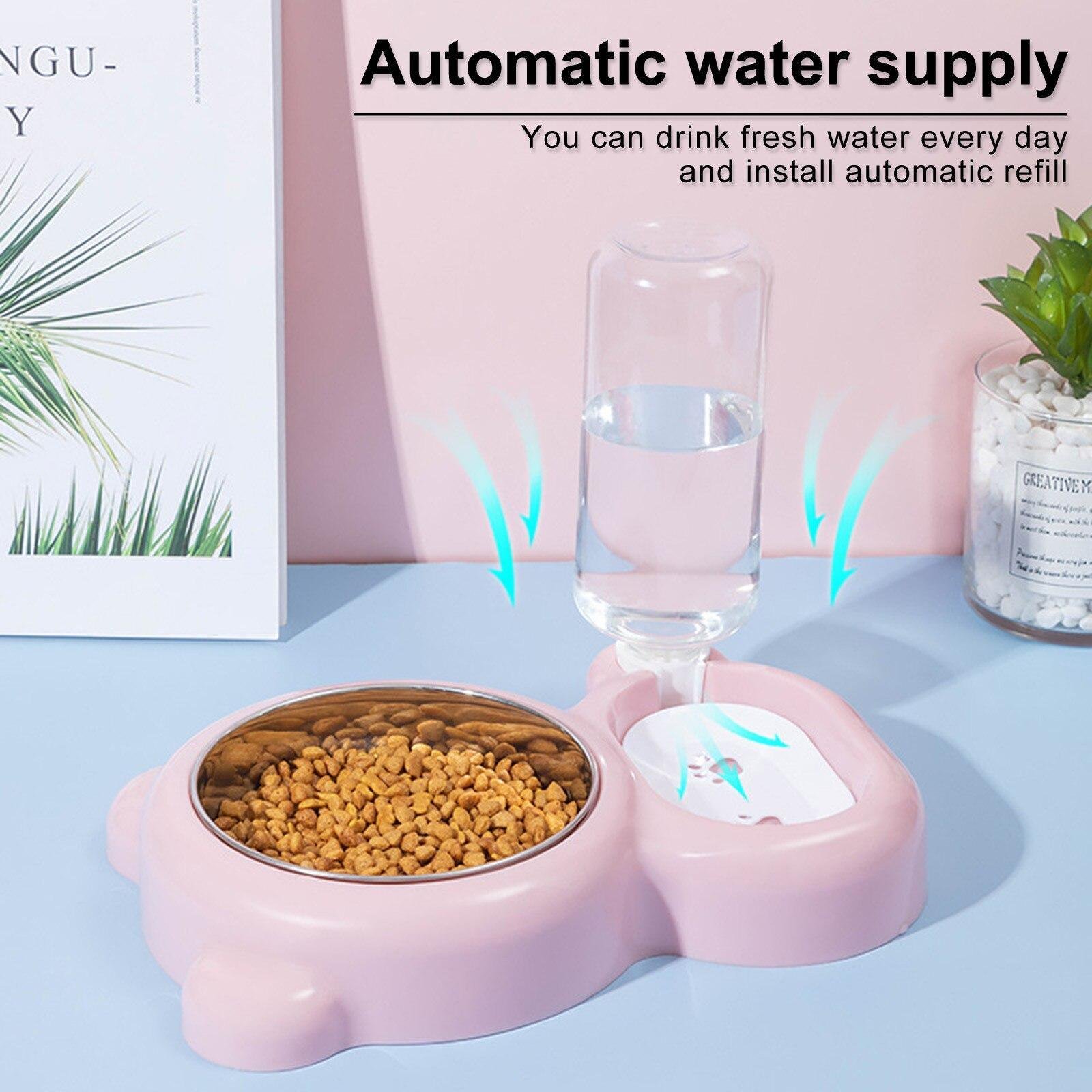 Home > Pet Cat Bowl Stainless Steel Multifunctional Dog Cat Bowl With Water Bottle Drinking Water Feeding Bear Bowl gatos